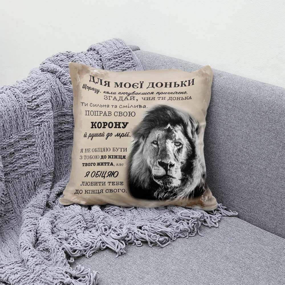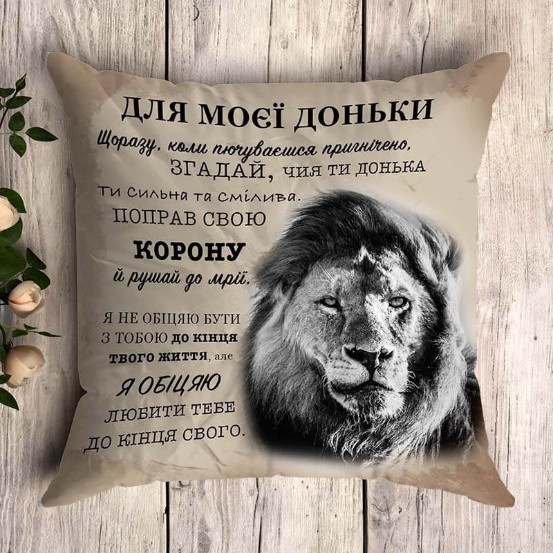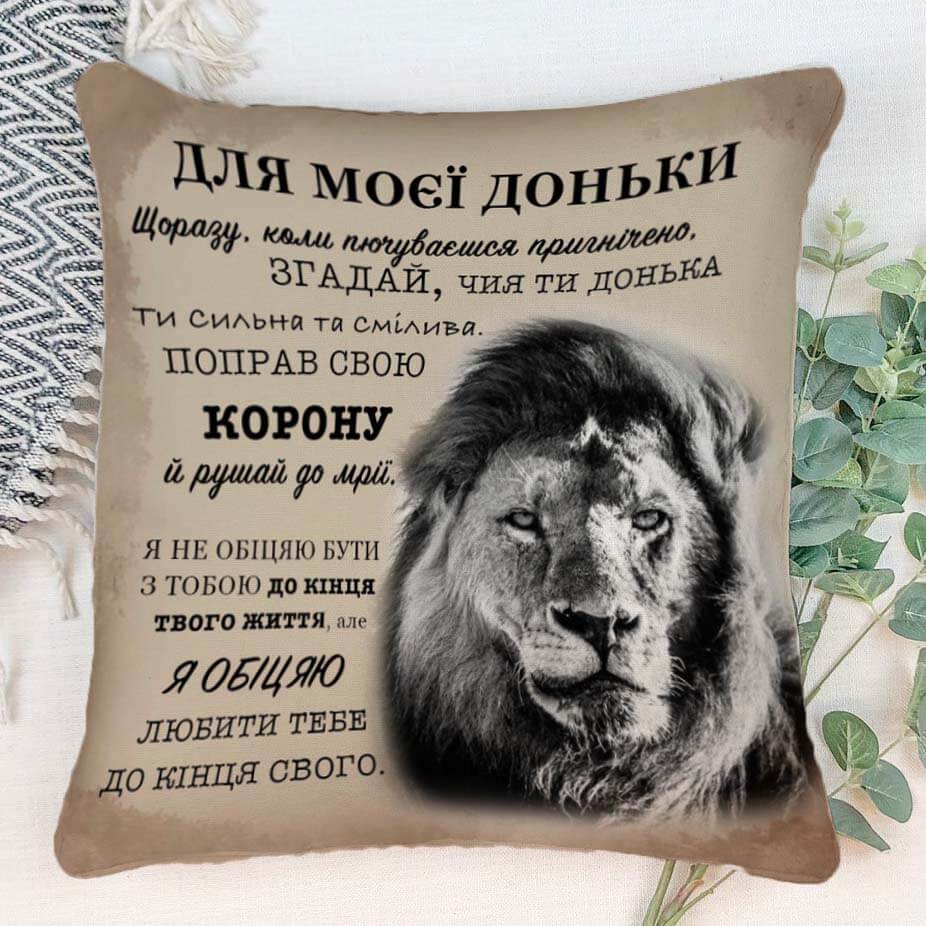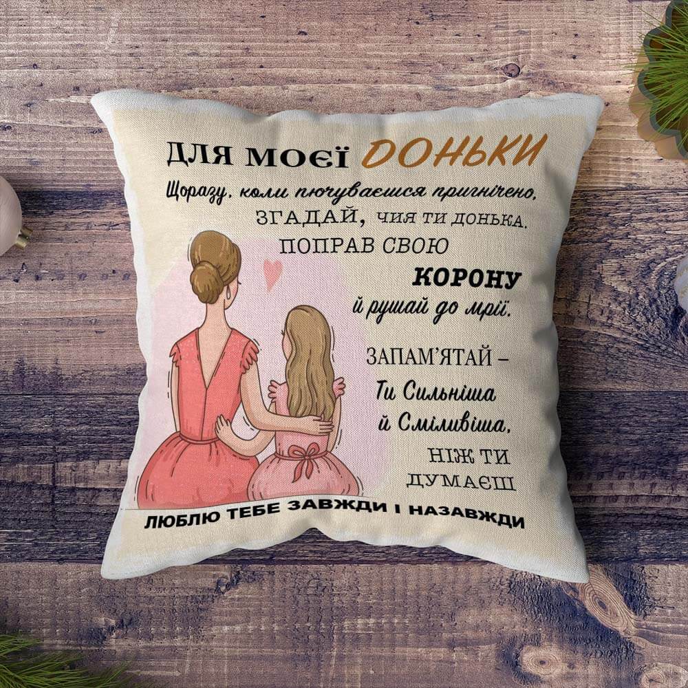 Подушка з авторськими словами викличе теплі почуття у доньки та буде завжди нагадувати про Вас.